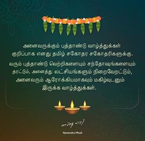 ஒவ்வொரு ஆண்டும் சித்திரை முதல் நாள் தமிழ் புத்தாண்டாக கொண்டாடப்பட்டு வருகிறது. இந்நாளில் பிரதமர் நரேந்திர மோடி புத்தாண்டு வாழ்த்து தெரிவித்துள்ளார்.