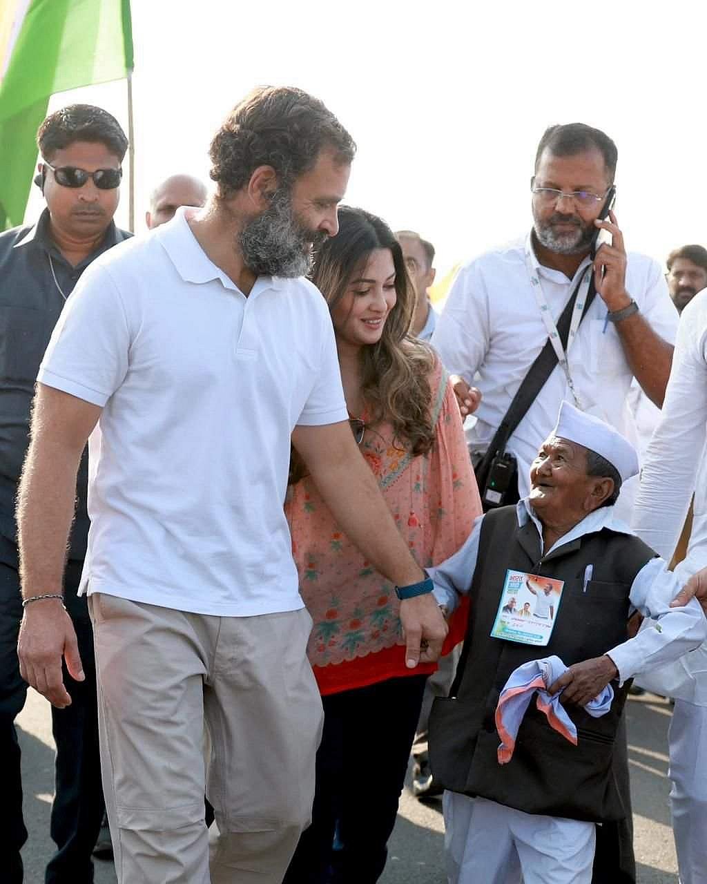 இன்று மகாராஷ்டிரத்தில் அகோலா பகுதியில் நடைப்பயணத்தில் ஈடுபட்டுள்ள ராகுல் காந்தியுடன் பிரபல பாலிவுட் நடிகை ரியா சென் கலந்துகொண்டார்.
