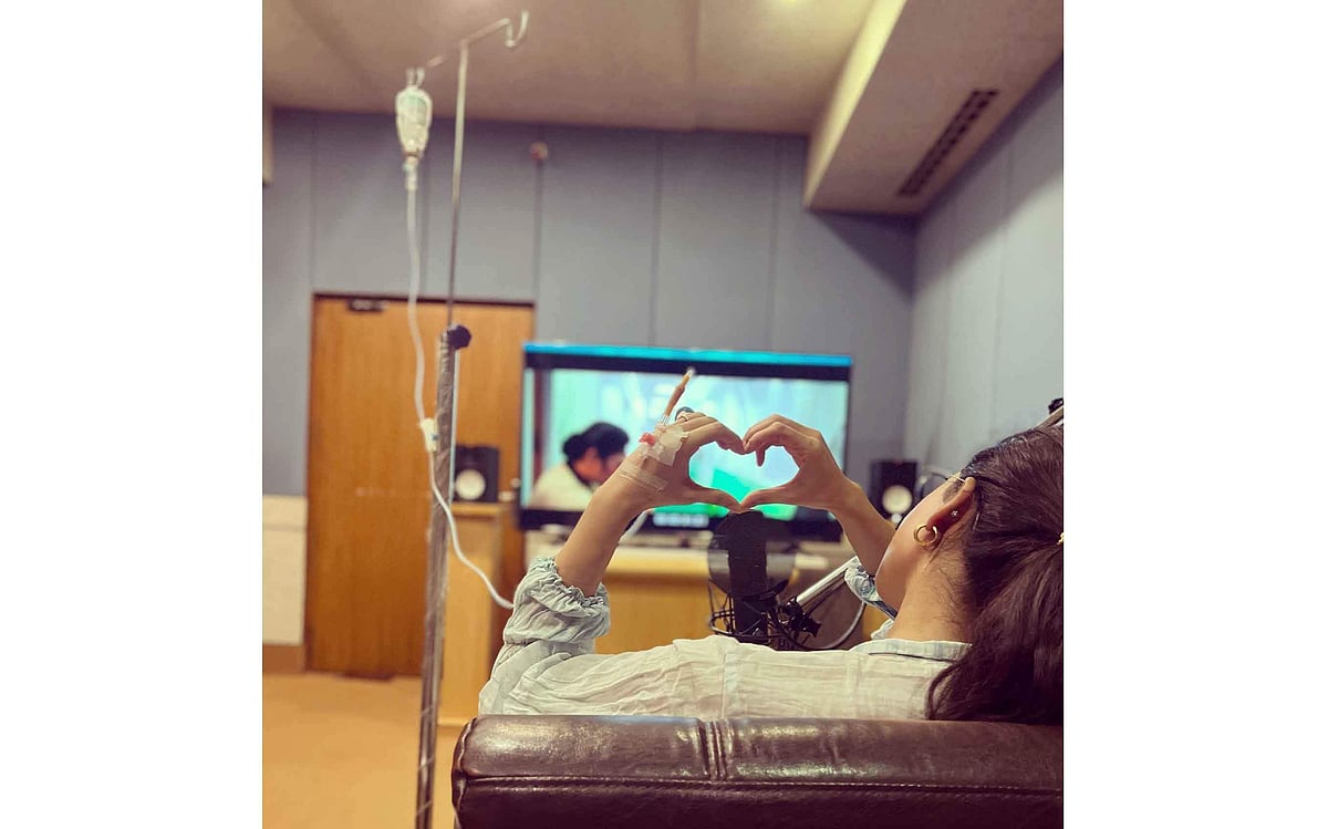 மருத்துவமனையில் குளுகோஸ் ஏற்றிக்கொண்டே டப்பிங் கொடுப்பது போன்ற புகைப்படத்தை தனது இன்ஸ்டாகிராம் பக்கத்தில் பகிர்ந்து அதிர்ச்சியளித்திருந்தார் சமந்தா.