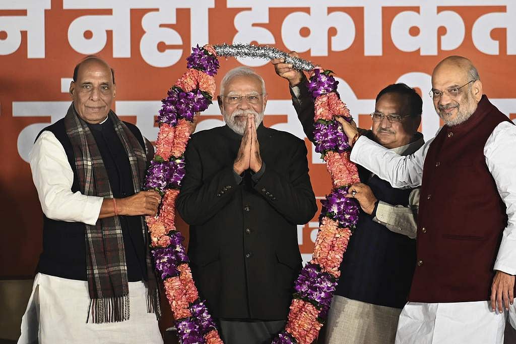 மத்திய பிரதேசம், ராஜஸ்தான், சத்தீஸ்கரில் பாஜக-காங்கிரஸ் இடையே நேரடிப் போட்டி காணப்பட்ட நிலையில், மூன்று மாநிலங்களிலும் பாஜக வெற்றி வாகை சூடியது. இதையடுத்து, அக்கட்சியினா் கொண்டாட்டங்களில் ஈடுபட்டுள்ளனா். இந்த மாநிலங்களில் புதிய முதல்வா் குறித்த எதிா்பாா்ப்பும் எழுந்துள்ளது.