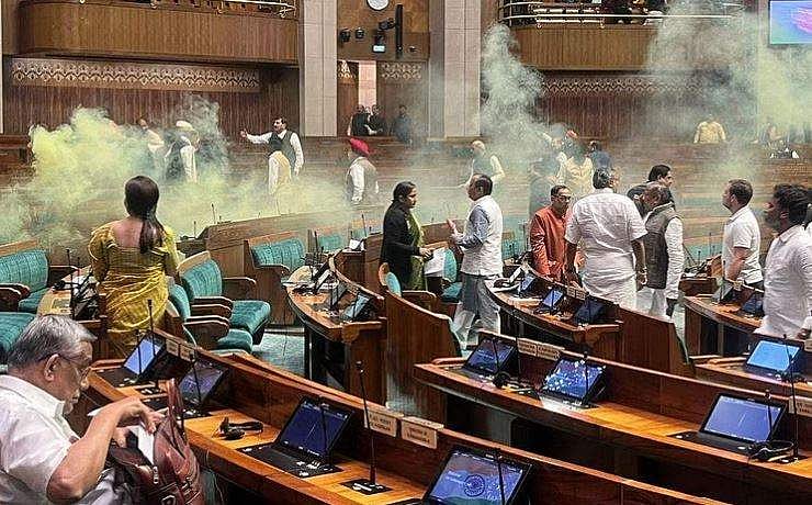 நாடாளுமன்ற மக்களவைக்குள் பாதுகாப்பை மீறி இன்று பிற்பகல் இருவர் நுழைந்து புகைக் குண்டுகளை வீசிய சம்பவம் பெரும் பரபரப்பை ஏற்படுத்தியுள்ளது. நாடாளுமன்ற மக்களவை ஒத்திவைக்கப்பட்ட நிலையில் மாநிலங்களவையில் இதுகுறித்து எதிர்க்கட்சி எம்.பி.க்கள் கேள்வி எழுப்பினர்.