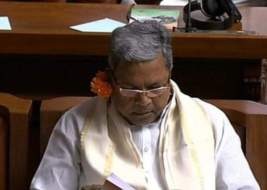 காதில் பூவுடன் அமர்ந்திருக்கும் சித்தராமையா