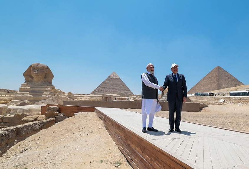 எகிப்தில் பழமையான மசூதி, பிரமிடுகளை பார்வையிட்ட பிரதமர் மோடி