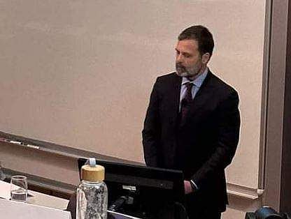 பிரிட்டன் கேம்பிரிட்ஜ் பல்கலைக்கழகத்தில் காங்கிரஸ் முன்னாள் தலைவர் ராகுல் காந்தி உரையாற்றும் புகைப்படம் இணையத்தில் வைரலாகி வருகிறது.