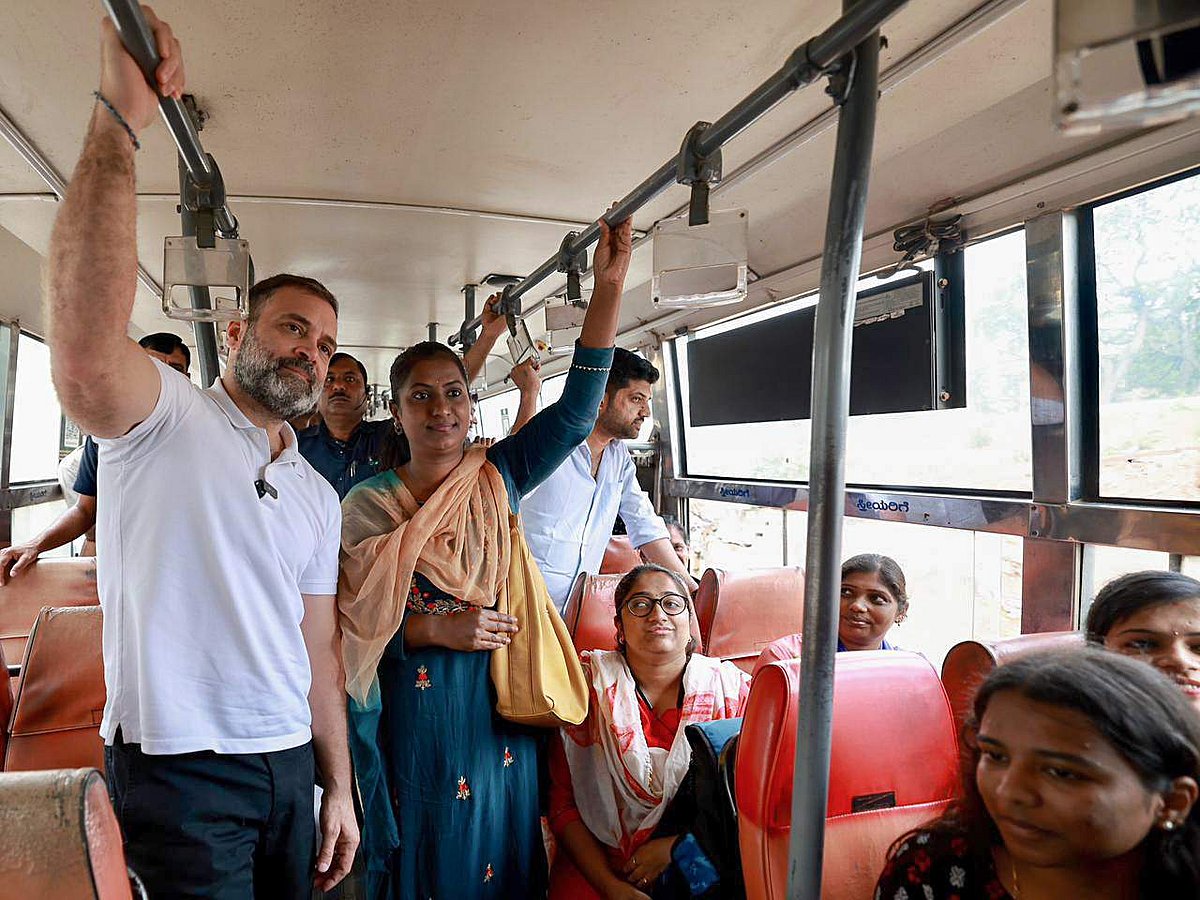 கர்நாடக மாநிலத்தில் பேரவைத் தேர்தல் நடைபெறவுள்ள நிலையில், காங்கிரஸ் தலைவர் ராகுல் காந்தி அரசுப் பேருந்தில் பயணித்து மக்களின் கவனத்தை ஈர்த்துள்ளார்.