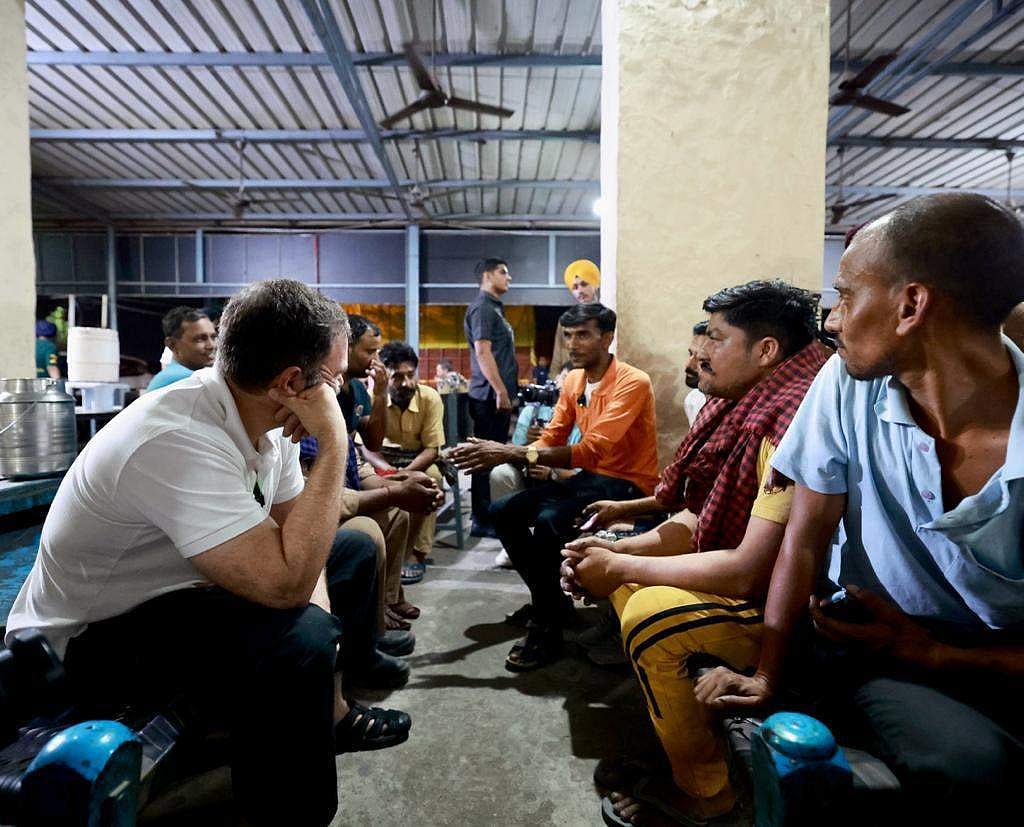இந்நிலையில், நேற்று இரவு தில்லியில் இருந்து சிம்லாவுக்கு காரில் பயணம் மேற்கொண்ட ராகுல் காந்தி, திடீரென்று தில்லி - சத்தீஸ்கர் நெடுஞ்சாலையில் காரை நிறுத்தி, சாலையோர உணவகங்களில் நின்றிருந்த லாரி ஓட்டுநர்களுடன் உரையாடினார்.