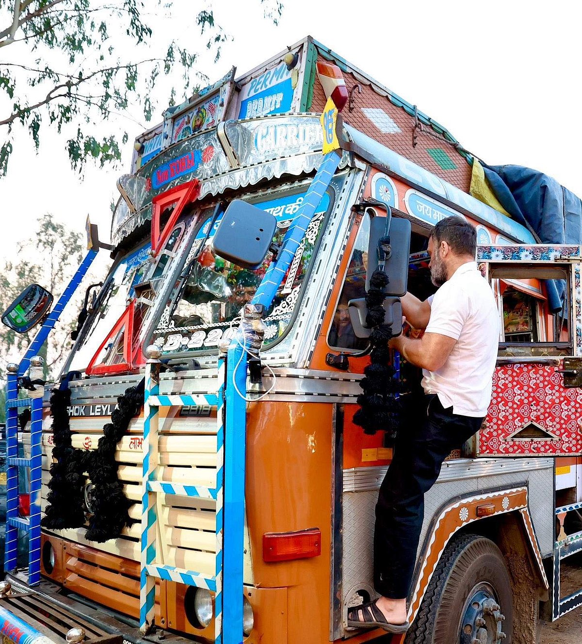 காங்கிரஸ் மூத்த தலைவர் ராகுல் காந்தி, நேற்றிரவு திடீரென்று தனது காரை நிறுத்தி லாரியில் பயணம் மேற்கொண்ட சம்பவம் இணையத்தில் வைரலாகி வருகின்றது.