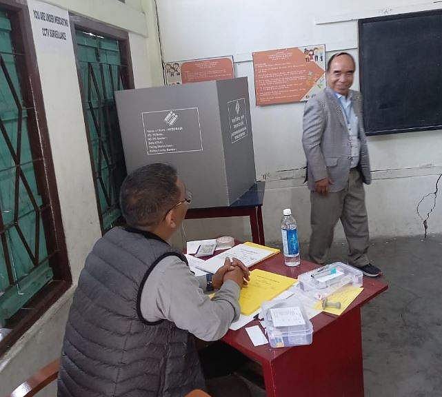 வாக்கு மையத்தில் தொழில்நுட்பக் கோளாறு சரிசெய்யப்பட்டதையடுத்து அய்ஸ்வால் தொகுதியில் மிஸோரம் முதல்வர் ஜோரம்தங்கா வாக்களித்தார்.
