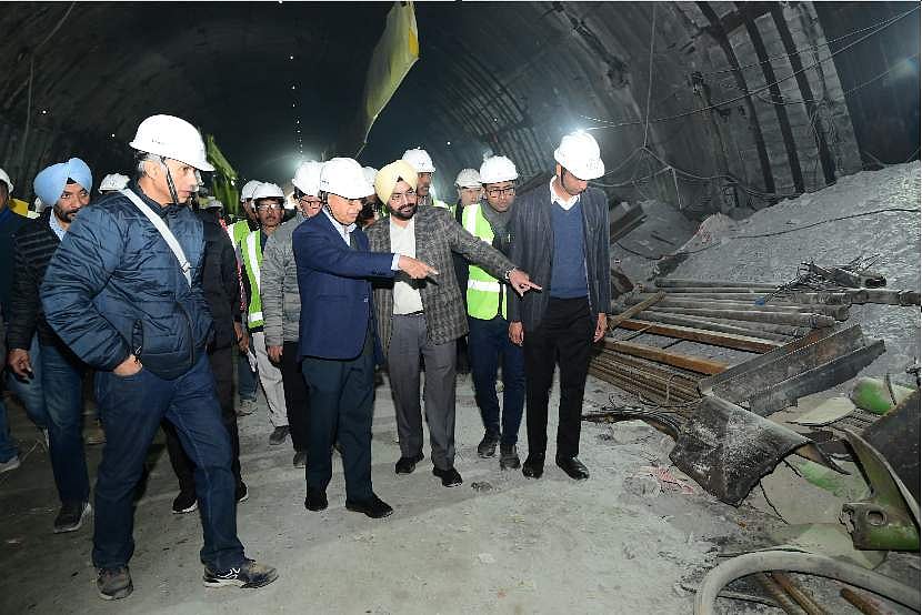 இதனால் சுரங்கப் பாதைக்குள் கட்டுமான பணியில் ஈடுபட்டிருந்த 41 தொழிலாளா்கள், கடுமையான இடிபாடுகளுக்குப் பின்னால் சிக்கிக் கொண்டனா்.