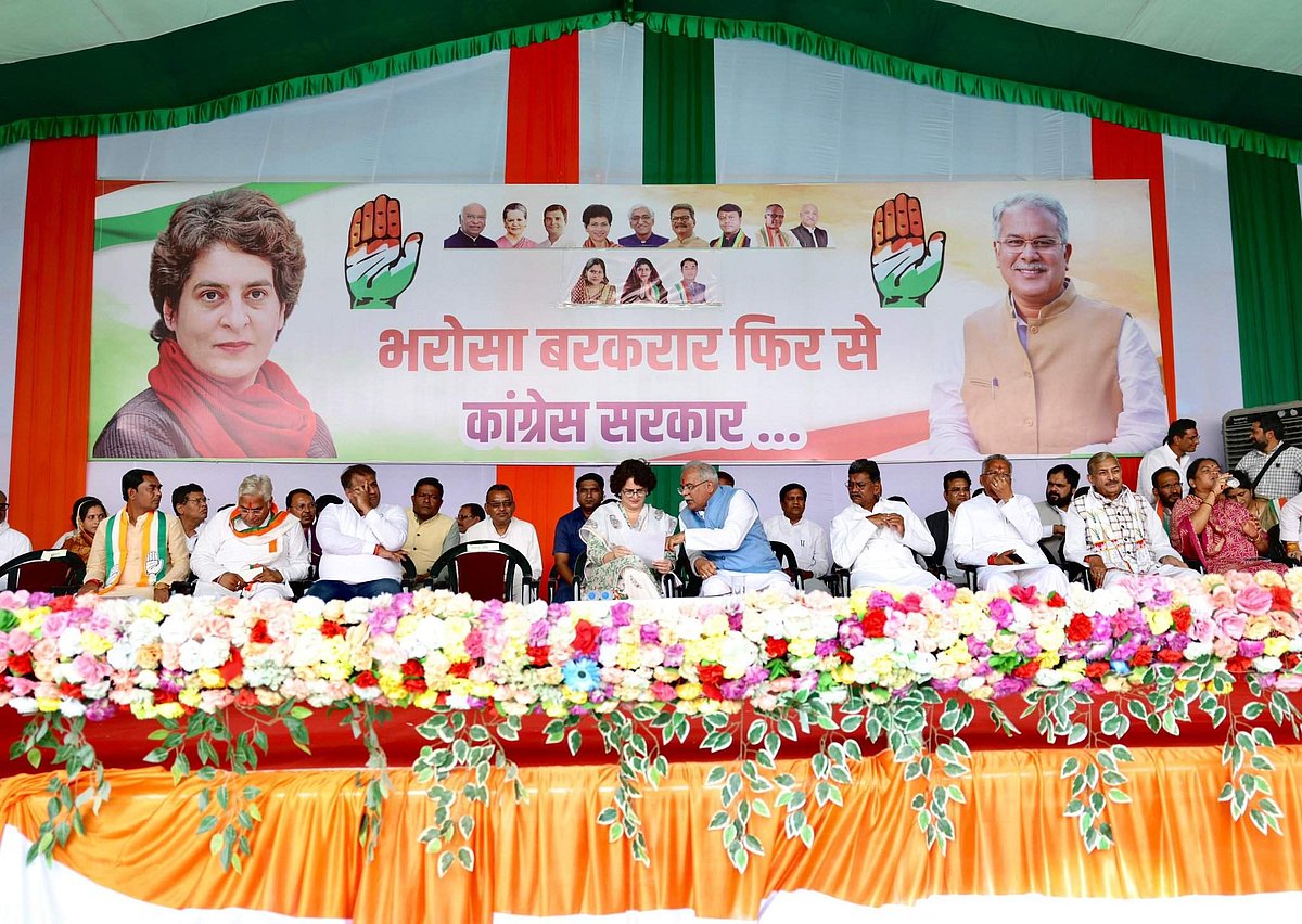 சத்தீஸ்கர் பேரவைத் தேர்தலையொட்டி மானிய விலையில் சிலிண்டர், சுயஉதவி குழுக்களுக்கு கடன், இலவச மின்சாரம் என காங்கிரஸ் பொதுச் செயலாளர் பிரியங்கா காந்தி பல்வேறு அறிவிப்புகளை வெளியிட்டார்.