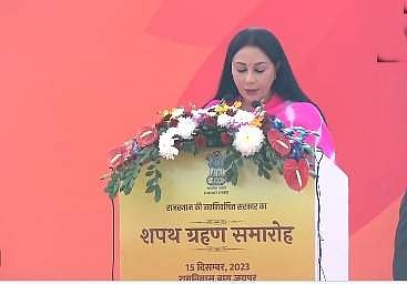 பதவியேற்பு விழாவில் பிரதமர் நரேந்திர மோடி, மத்திய உள்துறை அமைச்சா் அமித் ஷா, பாஜக தேசியத் தலைவர் ஜெ.பி.நட்டா உள்ளிட்ட தலைவர்கள் பங்கேற்றனர்.