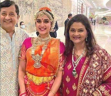இஷா அம்பானியின் திருமண நிகழ்ச்சியில் கலந்துகொண்டு ராதிகா நடனமாடினார்.