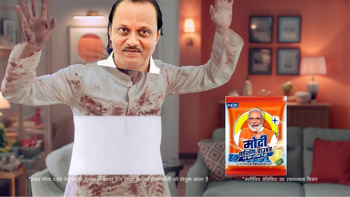 இதுபோல நெட்டிசன்கள் பலரும் இந்த போஸ்டரை பகிர்ந்து விமரிசித்து கருத்து பதிவிட்டு வருகின்றனர். சிலர் அஜித் பவாரின் புகைப்படத்தை இணைத்து மீம் போட்டு பகிர்ந்து வருகின்றனர்.