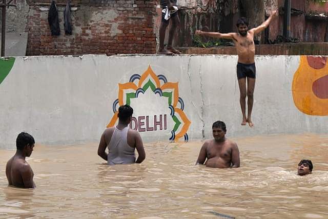 பருவ மழை பெய்து வருவதாலும், யமுனை ஆற்றில் வெள்ளப்பெருக்கு ஏற்பட்டுள்ளதாலும் தலைநகரான தில்லியே வெள்ளத்தில் மிதக்கிறது. தலைநகரின் சில குடிமகன்கள் தண்ணியில் மிதக்கின்றனர்.