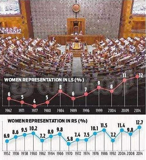 நாடாளுமன்ற இரு அவைகளிலும் பெண்களின் சதவிகிதம் இதுவரை 15 சதவிகிதத்திற்குள்ளாகவே இருக்கிறது.