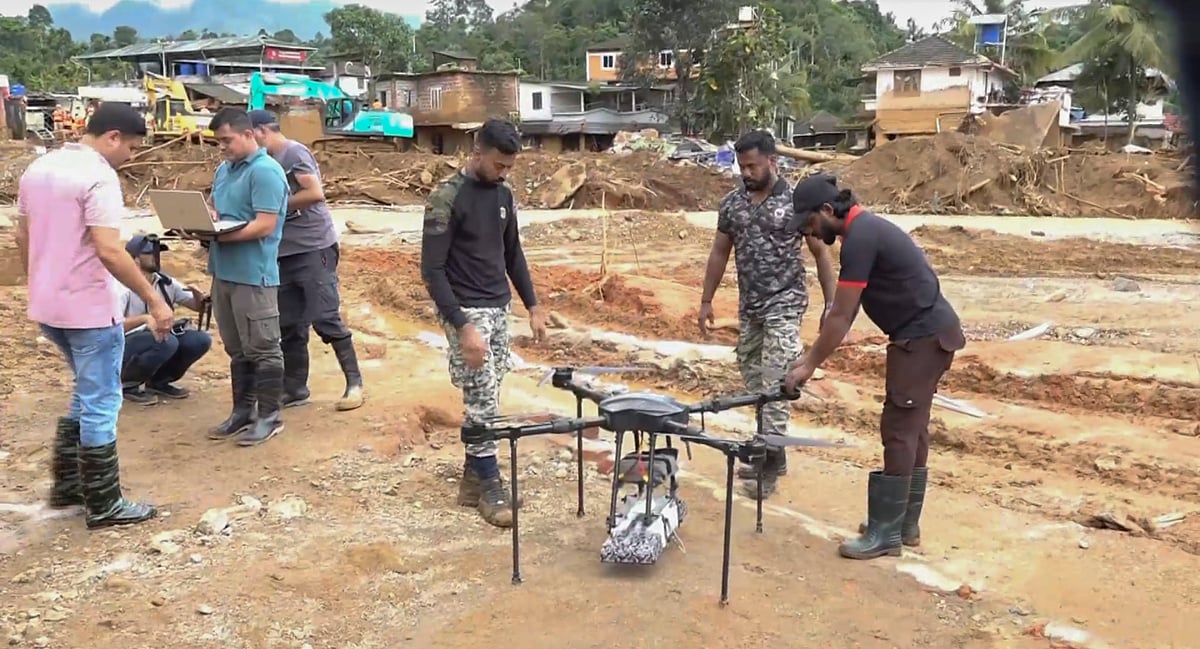 சூரல்மலையில் மண்ணில் புதைந்துள்ள உடல்களை கண்டுபிடிக்க டிரோன்கள் மூலம் தேடுதல் பணி