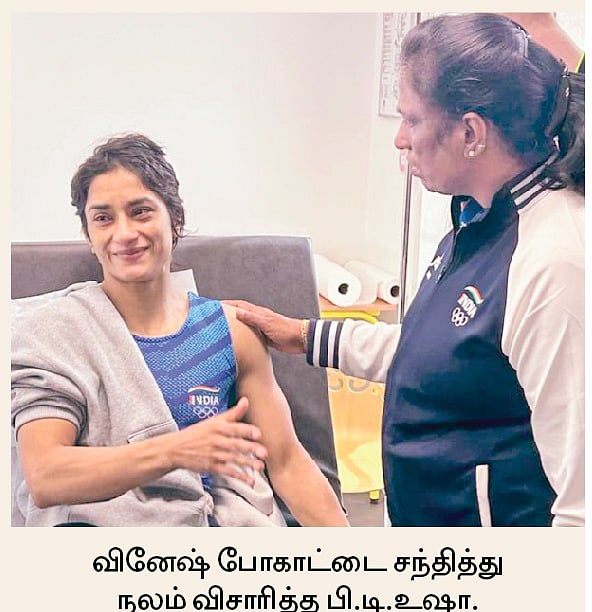 இந்திய ஒலிம்பிக் சங்கத் தலைவர் பி.டி. உஷா கூறுகையில், "வினேஷ் போகாட்டை மருத்துவமனையில் சந்தித்தேன். இந்திய ஒலிம்பிக் சங்கம், இந்திய அரசு, ஒட்டுமொத்த தேசம் அவருக்கு ஆதரவளிக்கிறது. அவருக்குத் தகுந்த மருத்துவ மற்றும் உணர்வுபூர்வ ஆதரவு அளிக்கப்படுகிறது.