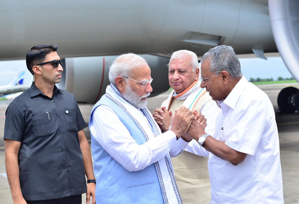 கேரளத்தின் கண்ணூர் விமான நிலையம் வந்தடைந்த பிரதமர் மோடியை ஆளுநர் ஆரிஃப் முகம்மது கான், முதல்வர் பினராயி விஜயன் மற்றும் உயர் அரசு அதிகாரிகள் வரவேற்றனர்.