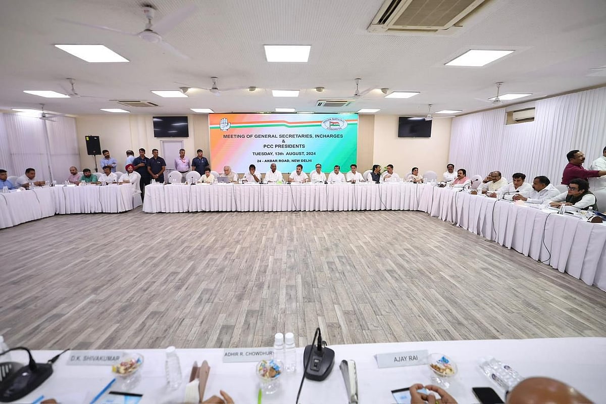 காங்கிரஸ் கூட்டத்தில் மல்லிகார்ஜுன கார்கே, கே.சி.வேணுகோபால்.