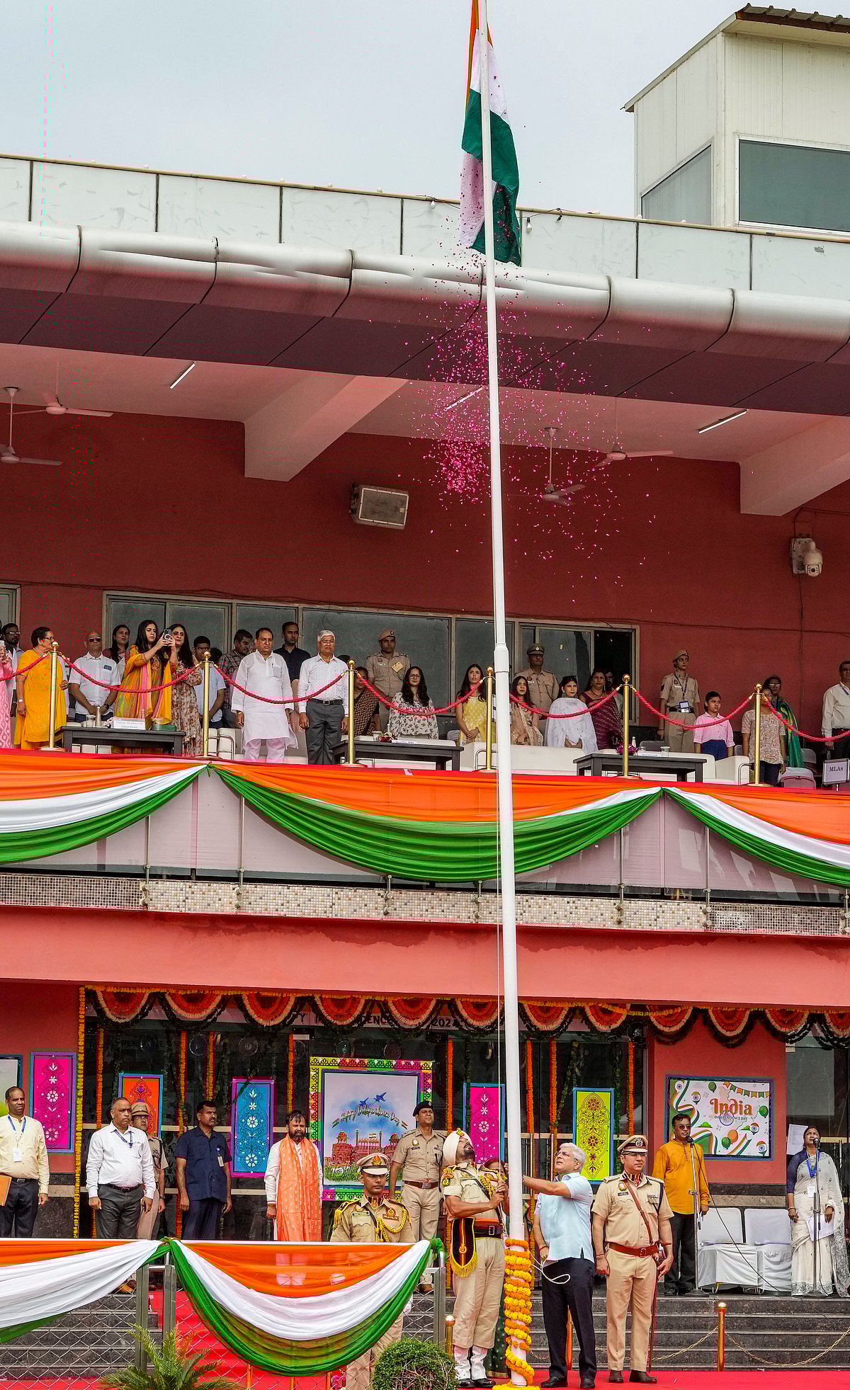 தில்லி முதல்வர் அரவிந்த் கேஜரிவால் சிறையில் உள்ளதால் சத்ரசல் மைதானத்தில் தில்லி உள்துறை அமைச்சர் கைலாஷ் கெலாட் தேசியக் கொடியை ஏற்றிவைத்தார்.