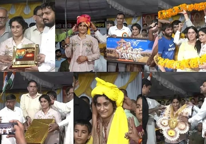 ஒலிம்பிக் போட்டியில் இறுதிச்சுற்றுவரை சென்று தகுதிநீக்கம் செய்யப்பட்ட வினேஷ் போகத்துக்கு அவரின் கிராமத்தினர் சேர்ந்து தங்கப் பதக்கம் வழங்கியுள்ளனர்.