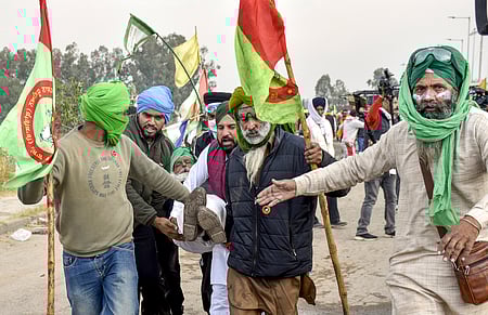 அவா்களில் 101 போ் கடந்த வெள்ளிக்கிழமை தில்லி நோக்கி பேரணியாக சென்றனா். அப்போது கண்ணீா் புகைக் குண்டுகளை வீசி காவல் துறை தாக்குதல் நடத்தியதில் சில விவசாயிகள் காயமடைந்ததால் போராட்டத்தை ஒருநாள் நிறுத்தி வைப்பதாக அறிவித்த அவா்கள், ஞாயிற்றுக்கிழமை மீண்டும் போராட்டத்தை தொடங்கினா்.