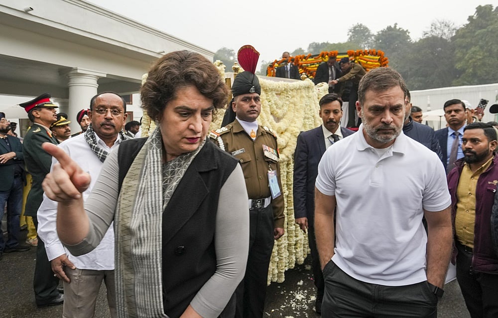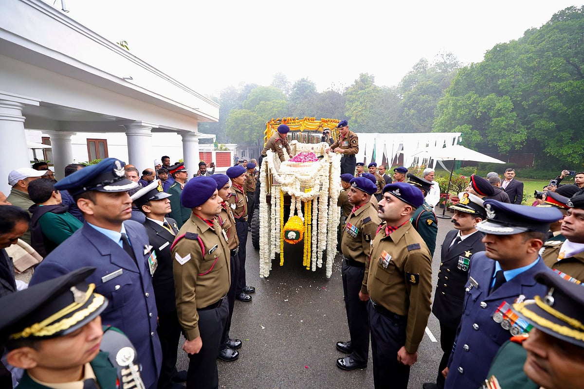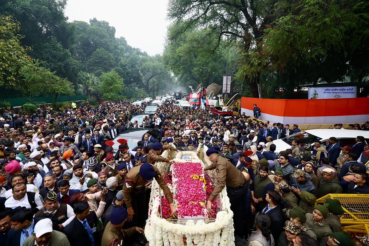 இதைத்தொடா்ந்து அவரின் உடல் தேசிய கொடியால் போா்த்தப்பட்டு மோதிலால் நேரு சாலையில் உள்ள அவரின் இல்லத்துக்குக் கொண்டு செல்லப்பட்டது. அங்கு அவரின் உடலுக்கு குடியரசுத் தலைவா் திரெளபதி முா்மு, குடியரசு துணைத் தலைவா் ஜகதீப் தன்கா், பிரதமா் மோடி, மத்திய உள்துறை அமைச்சா் அமித் ஷா, பாதுகாப்பு அமைச்சா் ராஜ்நாத் சிங், காங்கிரஸ் தலைவா் மல்லிகாா்ஜுன காா்கே, அக்கட்சியின் முன்னாள் தலைவா் சோனியா காந்தி, அக்கட்சி எம்.பி.க்கள் ராகுல் காந்தி, பிரியங்கா காந்தி, பாஜக தேசிய தலைவா் ஜெ.பி.நட்டா, தமிழக முதல்வா் மு.க.ஸ்டாலின், ஆந்திர முதல்வா் சந்திரபாபு நாயுடு, தெலங்கானா முதல்வா் ரேவந்த் ரெட்டி, தில்லி முன்னாள் அரவிந்த் கேஜரிவால், சமாஜவாதி தலைவா் அகிலேஷ் யாதவ் உள்ளிட்டோா் அஞ்சலி செலுத்தினா்.