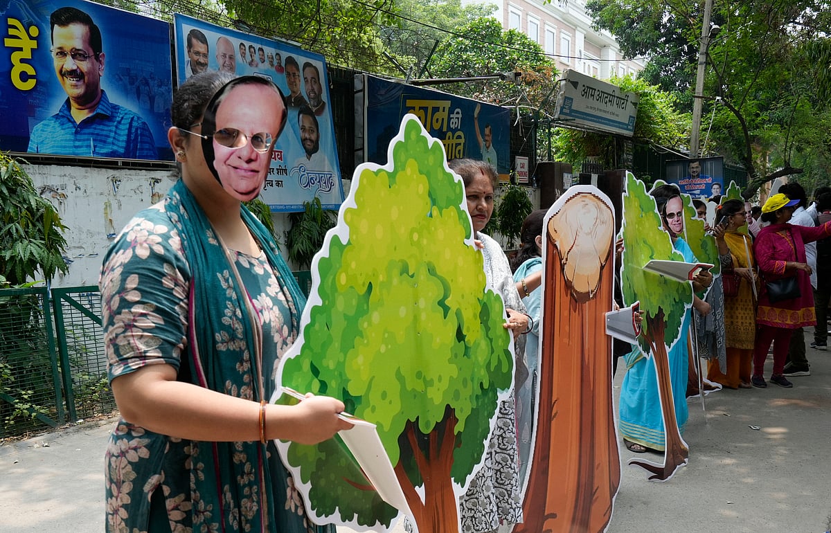 தெற்கு தில்லியில் சாத்பரி பகுதியில் சுமார் 1,100 மரங்கள் வெட்டப்படுவதற்கு எதிர்ப்பு தெரிவித்து ஆம் ஆத்மி தில்லியில் ஆளுங்கட்சியான கட்சியினர் சனிக்கிழமை(ஜூலை 20) போராட்டம் நடத்தியுள்ளனர்.