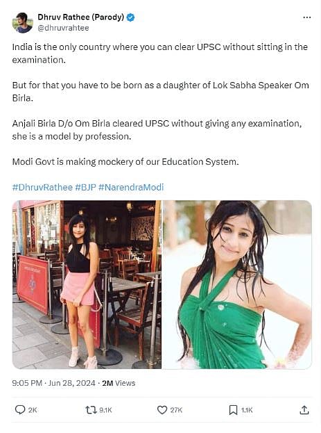 இந்த நிலையில், மாடலிங் தொழிலில் பிரபலமான அஞ்சலி பிர்லா, முதல் முயற்சியிலேயெ தேர்ச்சி பெற்றது எப்படி என்று எக்ஸ் தளத்தில் கேள்விகள் எழுப்பப்பட்டுள்ளன.
