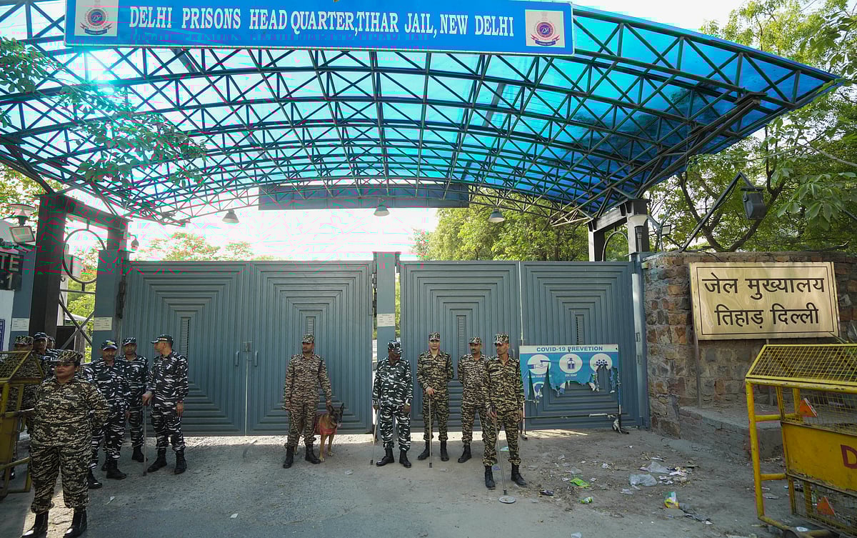 திகார் சிறை வாயிலில் பாதுகாப்புப் பணியில் ஈடுபட்டிருந்த காவலர்கள்