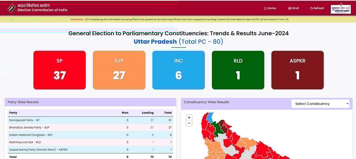 உத்தரப் பிரதேசத்தில் இந்தியா கூட்டணி முன்னிலை பெற்றுள்ளது.