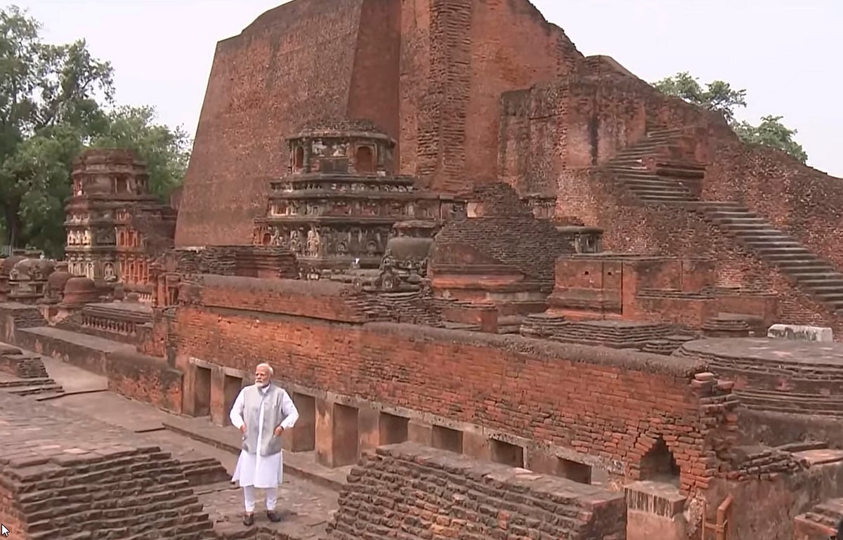 இந்தப் பல்கலைக்கழகத்துக்கு அருகே, மிகப் பழமையான யுனெஸ்கோவால் உலக பழம்பெருமை வாய்ந்த தளம் என அடையாளம் காணப்பட்டு பாதுகாக்கப்பட்டு வரும் நாளந்தா பல்கலைக்கழகத்தினை பிரதமர் மோடி பார்வையிட்டார்.