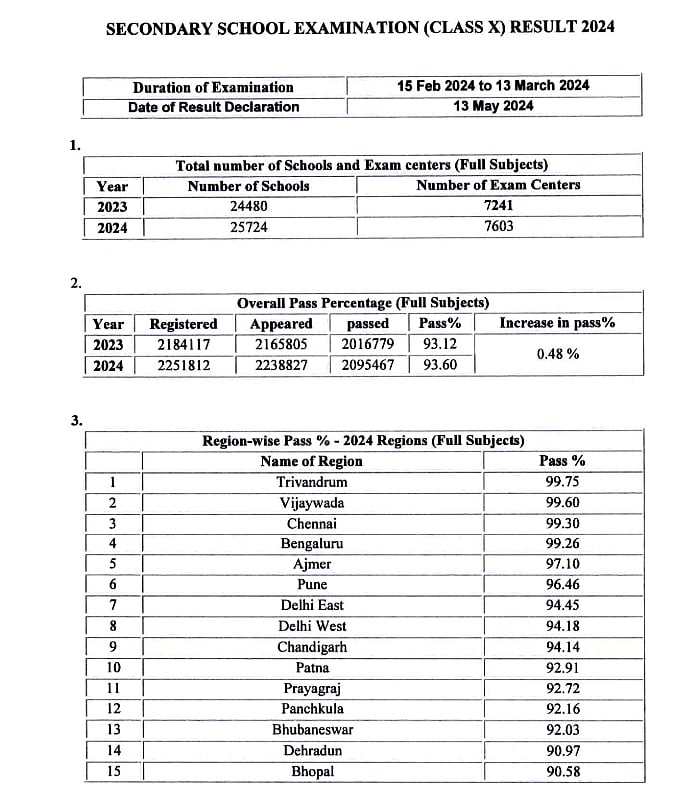 மத்திய இடைநிலை கல்வி வாரியத்தின் கீழ் நடத்தப்பட்ட 2023-24ஆம் ஆண்டுக்கான பத்தாம் வகுப்புப் பொதுத் தேர்வு முடிவுகள் இன்று பகல் 1 மணியளவில் வெளியிடப்பட்டுள்ளது.