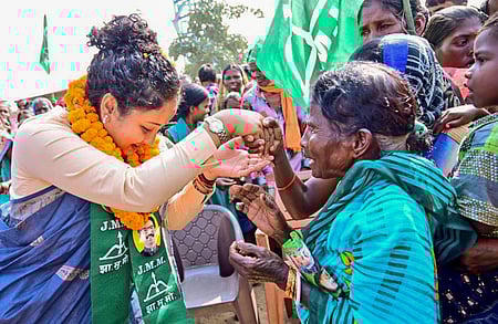 கிரிதி மாவட்டத்தில் வாக்கு சேகரித்த ஜாா்க்கண்ட் முதல்வா் ஹேமந்த் சோரனின் மனைவி கல்பனா சோரன்.