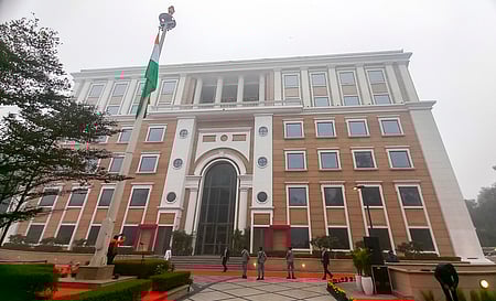 திறப்பு விழாவுக்கு வருகைதந்த (இடமிருந்து காங்கிரஸ் தலைவா் மல்லிகாா்ஜுன காா்கே, கட்சியின் பொதுச் செயலா் கே.சி.வேணுகோபால், கட்சியின் நாடாளுமன்ற குழுத் தலைவா் சோனியா காந்தி, மக்களவை எதிா்க்கட்சித் தலைவா் ராகுல் காந்தி. ~தில்லியில் புதன்கிழமை திறக்கப்பட்