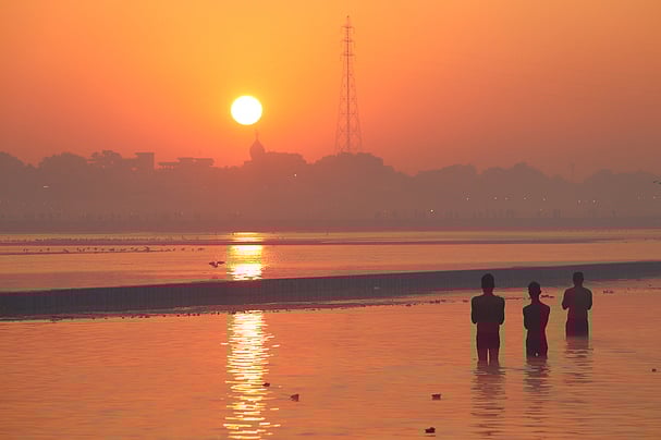 மகா கும்பமேளாவில் ஞாயிற்றுக்கிழமை சூரிய உதயத்தின்போது புனித நீராடிய பக்தா்கள் இடம்