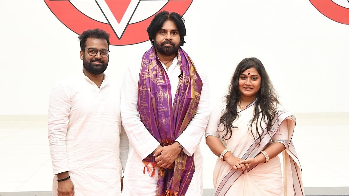ஜனசேனை கட்சித் தலைவர் பவன் கல்யாணுடன் விணுதா கோட்டா மற்றும் அவரது கணவர் சந்திரபாபு - X | Vinutha Kotaa