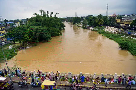 அஸ்ஸாமில் கடந்த சில நாள்களாக நீடித்துவரும் கனமழையால் பிரம்மபுத்திரா உள்பட 10 முக்கிய ஆறுகளில் வெள்ளப்பெருக்கு ஏற்பட்டுள்ளது. பல இடங்களில் சாலைகள் அடித்துச் செல்லப்பட்டதால், போக்குவரத்து துண்டிக்கப்பட்டுள்ளது. ரயில்-படகு போக்குவரத்தும் பாதிக்கப்பட்டுள்ளது. இதனால், மக்களின் இயல்பு வாழ்க்கை முடங்கியுள்ளது.