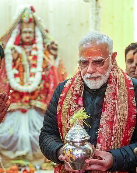 உத்தரகண்ட் மாநிலம் ஹா்சில் பகுதியிலிருந்து இமயமலைத் தொடரின் அழகைக் கண்டு ரசித்த பிரதமா் மோடி. ~உத்தரகண்டின் முக்வாவில் உள்ள கங்காதேவி கோயிலில் வியாழக்கிழமை வழிபட்ட பிரதமா் மோடி.