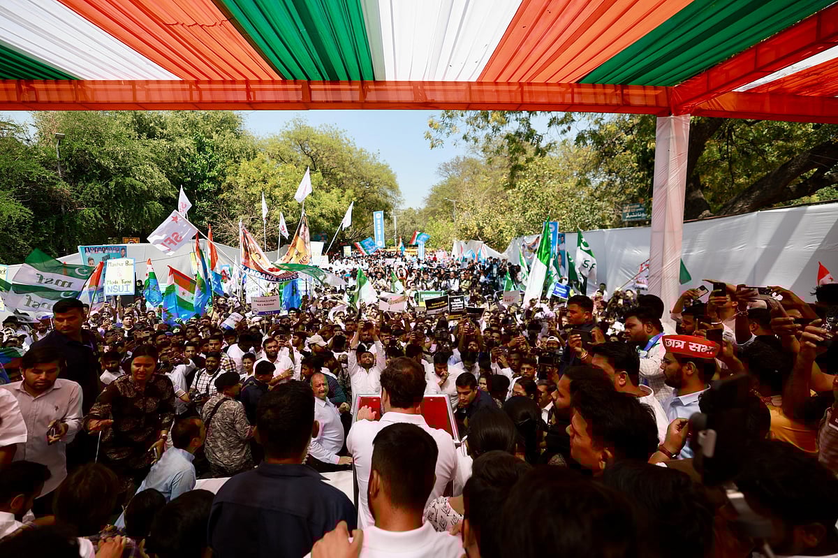 தில்லியில் புதிய கல்விக் கொள்கை, யுஜிசியின் புதிய விதிகள், வினாத்தாள் கசிவு உள்ளிட்டவற்றுக்கு எதிராக இந்திய தேசிய மாணவர் சங்கம் இன்று(மார்ச் 22) போராட்டம் நடத்தியது.