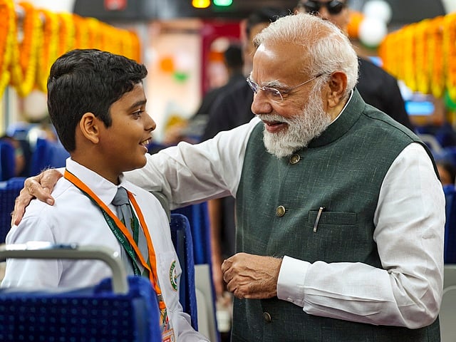 அதோடு, பிரதமர் மோடி, மத்திய அமைச்சரும், பாஜக எம்பி சுரேஷ் கோபி, வந்தே பாரத் ரயிலில் குழந்தைகளுடன் கலந்துரையாடினார் என்பது குறிப்பிடத்தக்கது.