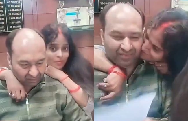 ஹரியாணா மாநிலம் பஞ்ச்குலா பகுதிக்குட்பட்ட பொதுத் துறையைச் சேர்ந்த அரசு வங்கியில் மேலாளர் அறையில் இளம்பெண் ஒருவர் ஹிந்தி பாடலுக்கு நடனமாடுகிறார். அப்போது மேலாளர் தொடர்ந்து பணிபுரிந்துகொண்டிருக்கிறார். திசைதிருப்பும் வகையில் அவரை பின்புறம் இருந்தவாறு கட்டியணைத்து நடன அசைவுகளைக் கொடுக்கிறார். ஆனால், அவர் தொடர்ந்து கோப்புகளைப் புரட்டி பணிபுரிவதைப்போல விடியோவில் பதிவாகியுள்ளது.