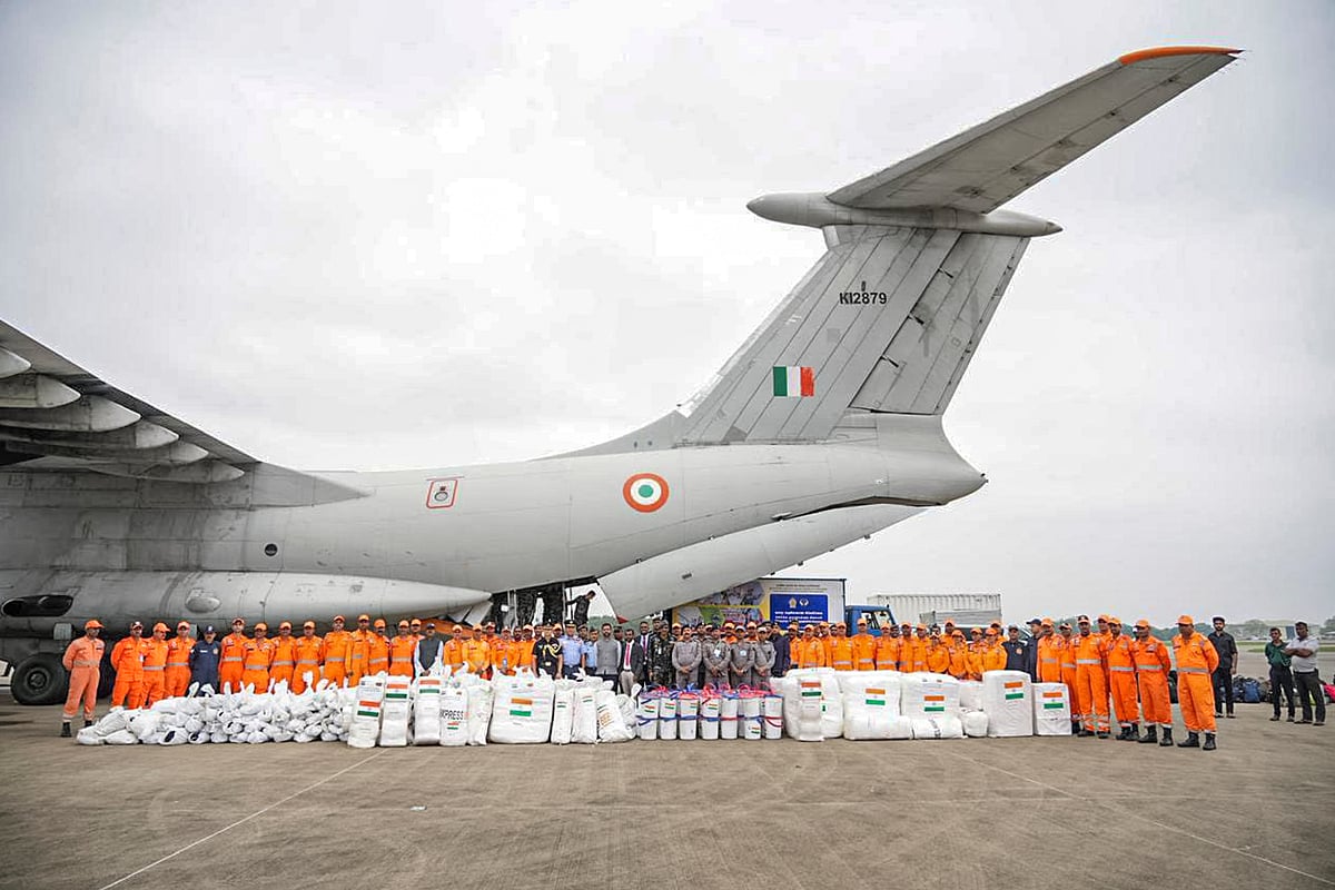 இதேபோன்று விமானப்படைக்குச் சொந்தமான ஏசி-130ஜே விமானத்தில் கூடாரங்கள், தார்பைகள், கம்பளிகள், நாப்கின்கள், உலர் பழங்களை அனுப்பிவைத்துள்ளது. மற்றொரு விமானத்தில் 9 டிரில்லியன் அவசரகால பொருள்களை அனுப்பியுள்ளது. மேலும், தேசிய பேரிடர் மீட்புப் படையைச் சேர்ந்த 80 வீரர்கள், அவசர கால கருவிகள் அனுப்பிவைக்கப்பட்டுள்ளன.