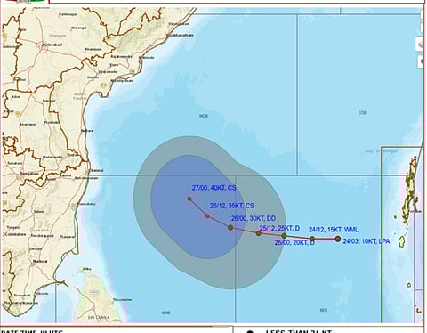 தற்போது வங்கக் கடலில் உருவாகும் இந்த புயல் ஆந்திரம் அருகே கரையைக் கடக்கக் கூடும் என்றும். அக். 27ஆம் தேதி புயலாக உருவாகும் என்றும் வானிலை ஆய்வு மையம் தெரிவித்துள்ளது.