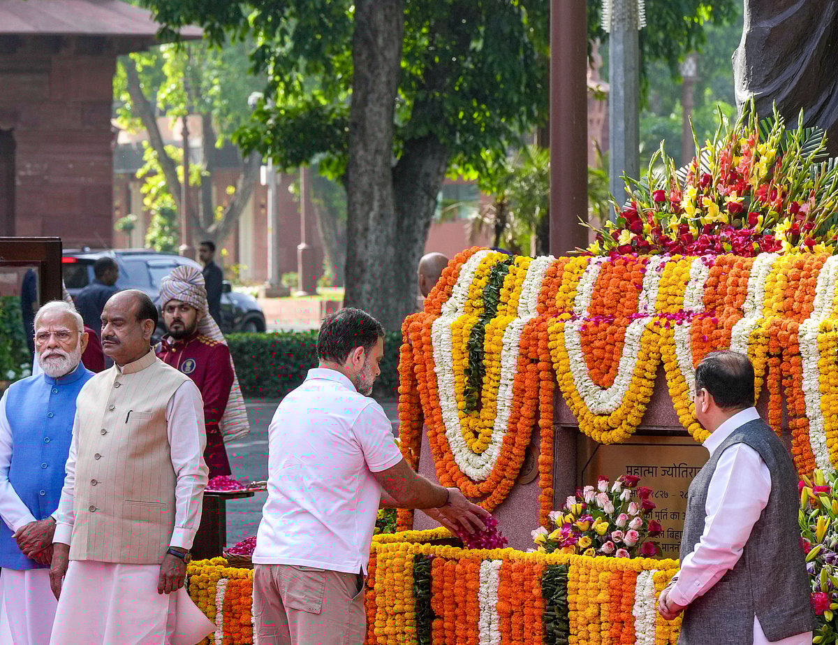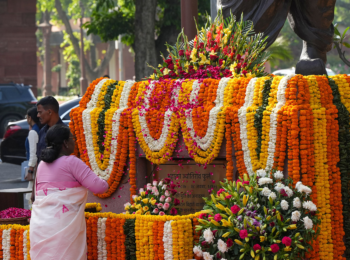 மகாத்மா ஜோதிபா புலேவின் 200-வது பிறந்த நாளையொட்டி தில்லி நாடாளுமன்ற வளாகத்தில் குடியரசுத்தலைவர் முர்மு, பிரதமர் மோடி உள்ளிட்டோர் மரியாதை செலுத்தினர்.