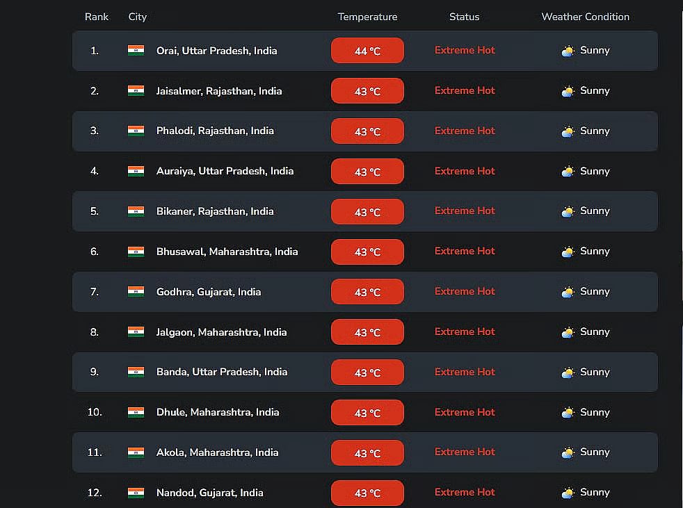 98 of the world's 100 hottest cities are in India Heatwave sweeps across the country