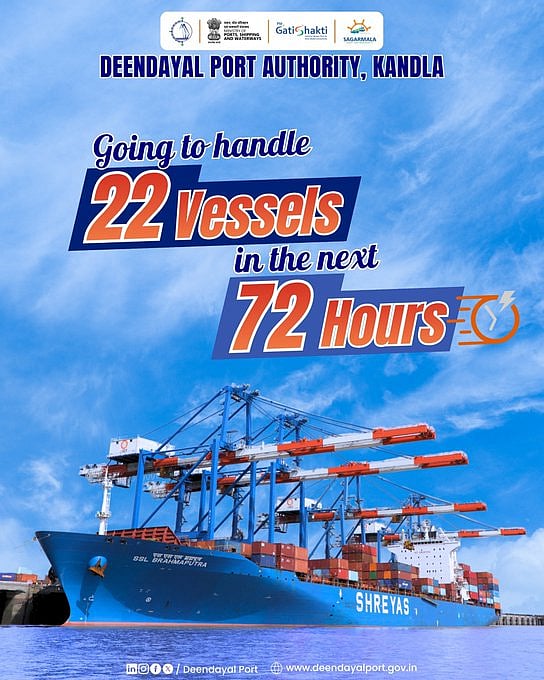 மேலும், குஜராத் மாநிலம், கண்ட்லாவில் உள்ள தீனதயாள் துறைமுக ஆணையம் வெளியிட்டிருக்கும் பதிவில், ”22 கப்பல்களை கையாளும் வகையில் பயணத் திட்டங்கள் மறுசீரமைக்கப்பட்டு, சிறந்த தரத்தில் சேவைகளை வழங்க துறைமுக பணியாளர்கள் திறமையாகச் செயல்பட்டு வருகின்றனர்” என்று பதிவிடப்பட்டுள்ளது.