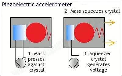 முதல் வகையின் செயல்பாடு நம் கைக்கடிகாரங்களைப் போன்றது. கடிகாரங்களின் உள்ளே இருக்கு க்வாட்ஸ் (quartz) படிகத்தின் மேல் அழுத்தம் கொடுக்கப்படும்போது, அழுத்தம் கொடுக்கப்படும் திசைக்குச் செங்குத்தாக ஒரு சிறு மின்சாரம் பாய்கிறது. கடிகாரங்கள் இதன் எதிர்விளைவைப் பயன்படுத்துகின்றன. அதாவது, மின்சாரத்தைச் செலுத்தி அந்தப் படிகத்தை அதிர வைப்பது. இந்த விளைவை அடிப்படையாகக் கொண்டு, நாம் நம் ஸ்மார்ட் ஃபோனை திருப்பும்போது, படிகத்தின் எந்த அச்சில் மின்சாரம் பாய்கிறது எனக் கணக்கிட்டு, அதன்மூலம் ஸ்மார்ட் ஃபோன் எந்த வாக்கில் இருக்கிறது என அறிந்துகொள்ளுமாறு வடிவமைத்திருப்பார்கள்.{pagination-pagination}
