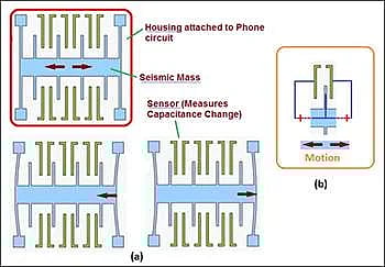 இரண்டாவது வகைதான் சுவாரசியமான, பிரமிப்பான தொழில்நுட்பம். ஸ்மார்ட் ஃபோனின் உட்புறம் இருக்கும் சிப்புடன், சீப்பின் பற்கள் போன்ற நுண்ணிய அமைப்புகளை உருவாக்குவார்கள். அவை உலோகத்தால் ஆனவை. அவற்றுக்கு மின் இணைப்பு கொடுக்கப்பட்டிருக்கும். அவற்றின் இடையே, அதைவிட நுண்ணிய சிலிக்கானால் ஆன அமைப்பைப் பொருத்தி இருப்பார்கள். அதாவது, உலோகச் சீப்புப் பற்களுக்கு இடையே இந்த சிலிக்கான் அமைப்பு அசையுமாறு பொருத்தியிருப்பார்கள். சிறு அதிர்வுக்கும் அசையுமாறும், அதேநேரம் இரு உலோகப் பற்களையும் தொடாதவாறும் அது வடிவமைக்கப்பட்டிருக்கும்.
