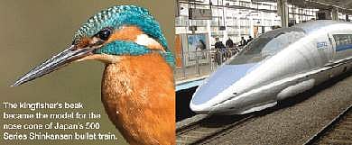 ஆந்தை, அடில் பென்குயின், மீன்கொத்தி மூன்றைப் போன்றும் வடிவமைக்கப்பட்ட புதிய ஷின்கான்சென் புல்லட் ரயில், பத்து சதவீதம் அதிக வேகமாகவும், பதினைந்து சதவீதம் குறைவான ஆற்றலை எடுத்துக்கொண்டும் செயல்பட்டது. பொழுதுபோக்குக்காகப் பறவைகளைக் கவனித்தது நகாட்ஷுவுக்குத் தன் வேலையில் வந்த ஒரு பெரிய சிக்கலைத் தீர்க்க உதவியது.